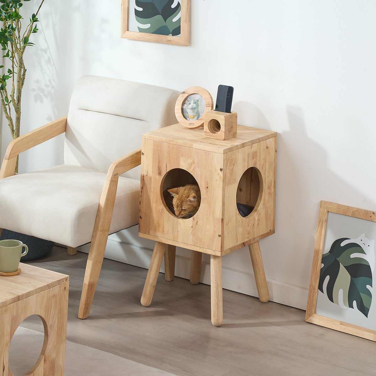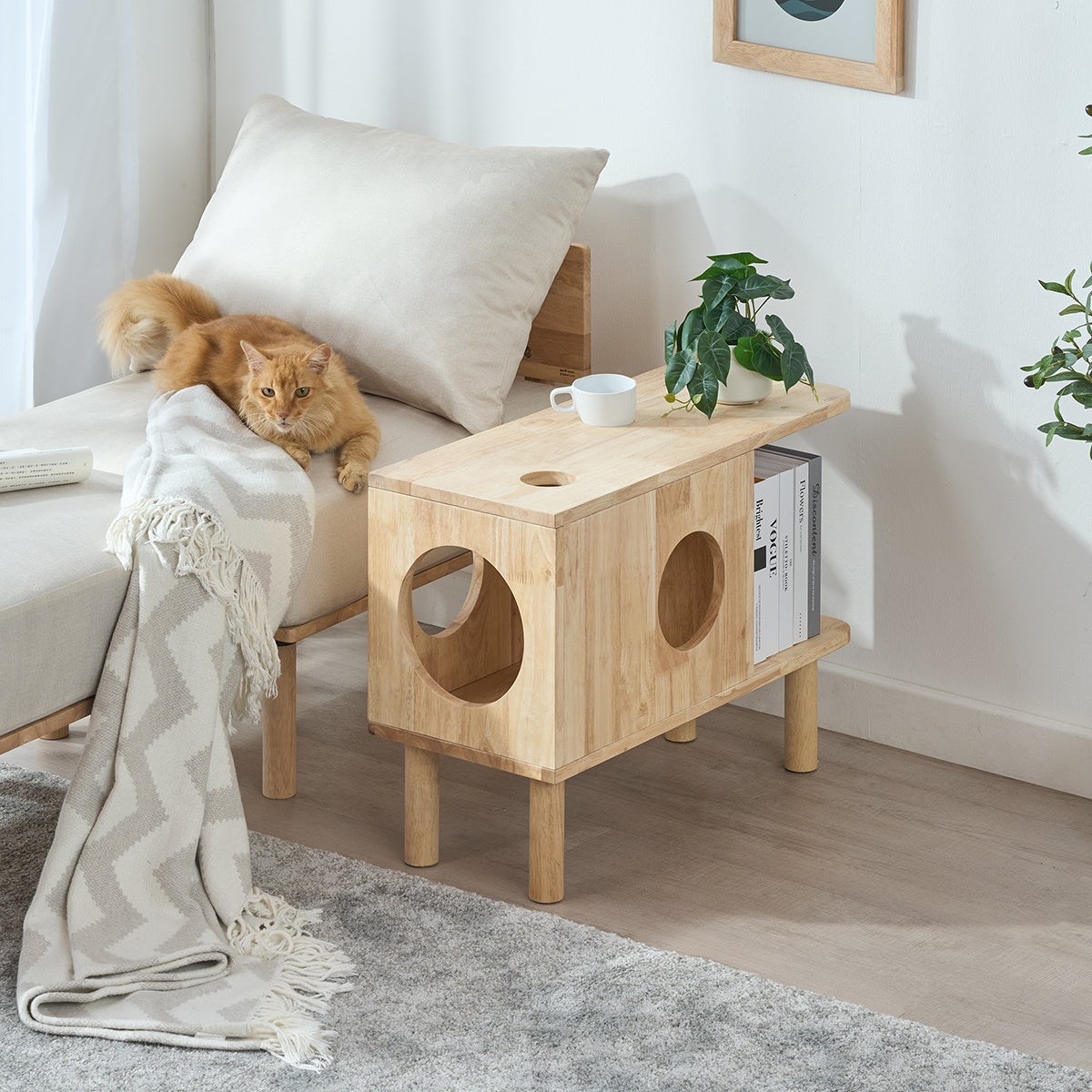 「ペット家具」は、センターテーブル、サイドテーブル、キャビネットなどを展開します。いつものリビングのテーブルやキャビネットをペットと一緒に過ごせる家具にすれば、スペースを有効に活用しながら、人もペットももっと心地よく過ごせる空間になります。