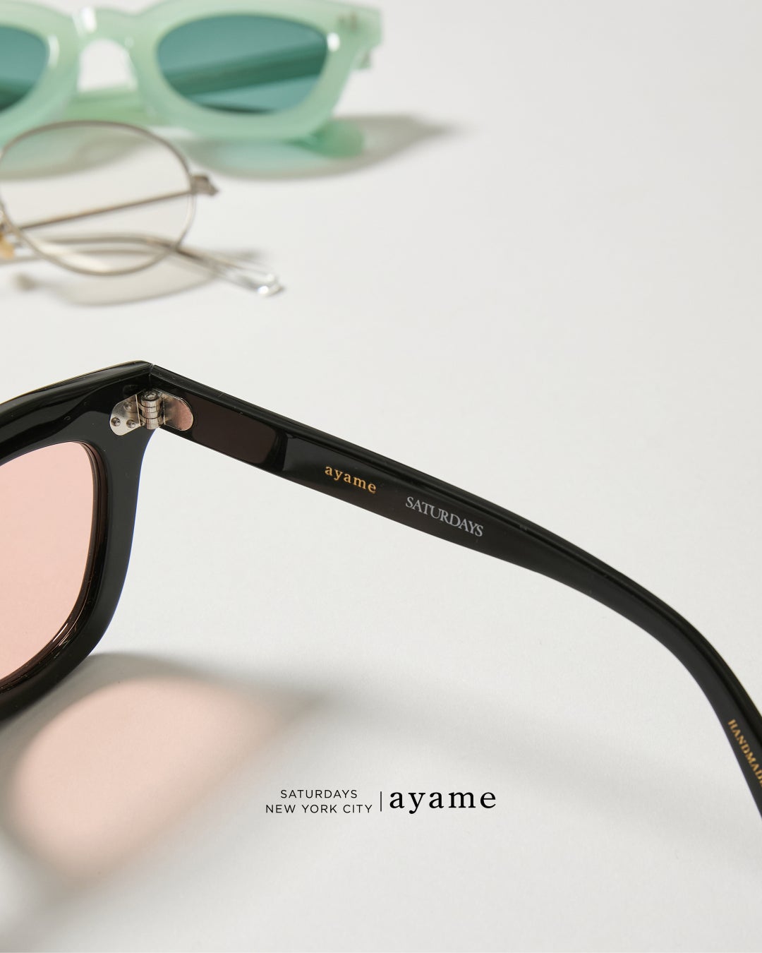 さらに、テンプルの内側には「SATURDAYS」の刻印を施し、本コラボレーションのためだけに仕立てた限定仕様となっております。細部に至るまで丁寧にデザインされた本モデルは、ライフスタイルにこだわるすべての方に向けた、特別な一本です。