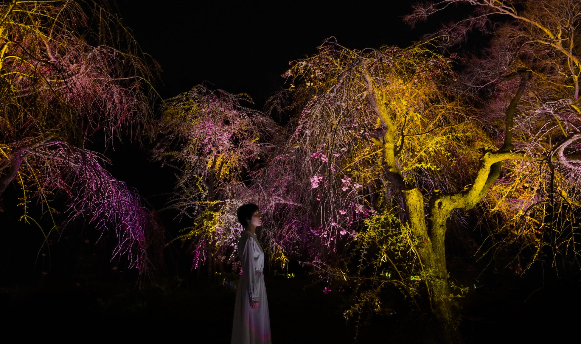 チームラボ《呼応する木々 - しだれ桜》© チームラボ
