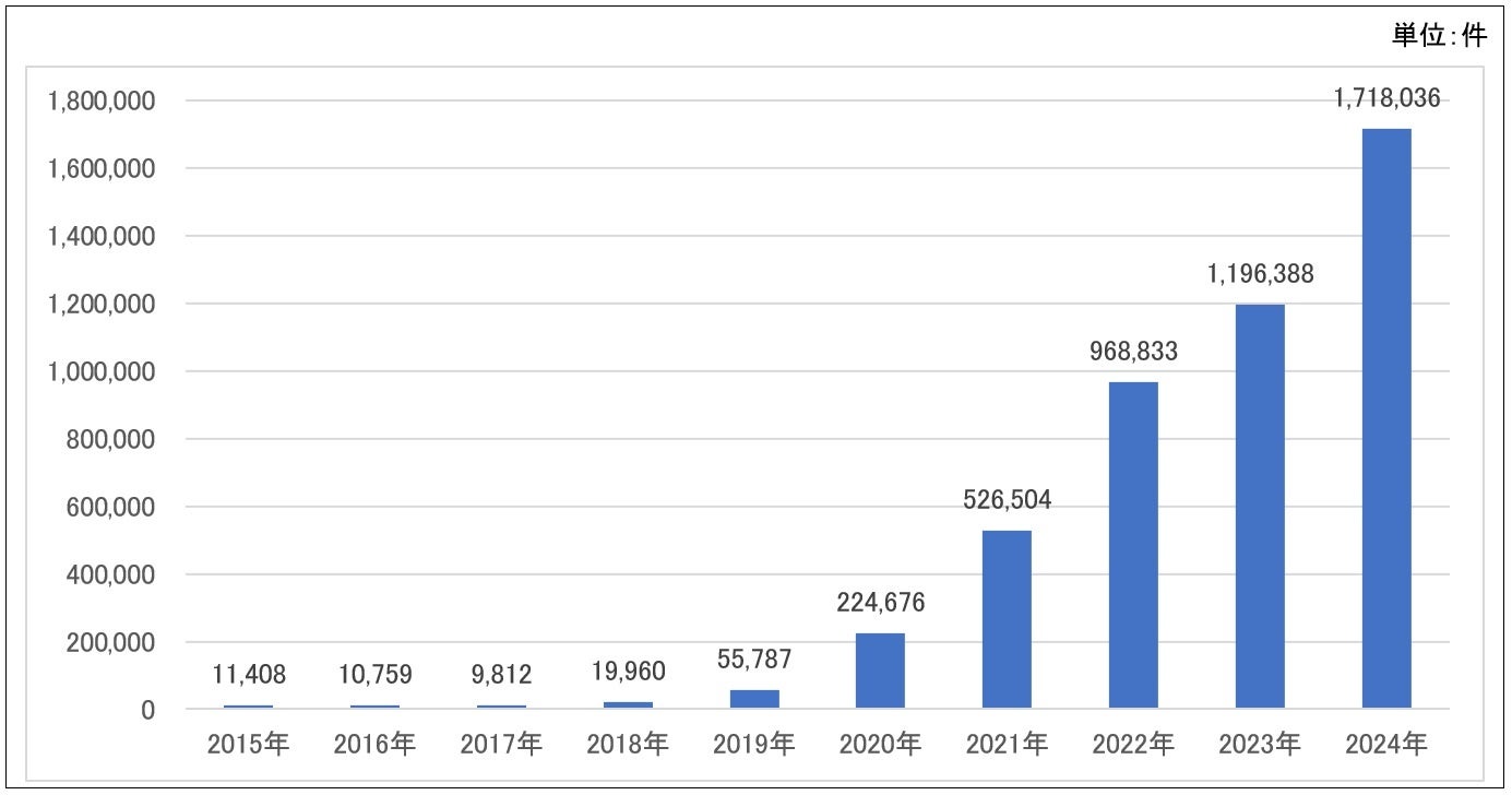 2024年のフィッシング報告件数は約170万件と前年より約50万件増加しています。フィッシングで悪用されるサービスや企業は、カード会社や金融機関のみならず、ECショッピングサイトや公共インフラ・サービスなどに多様化し、手口も巧妙化しています(※2)。