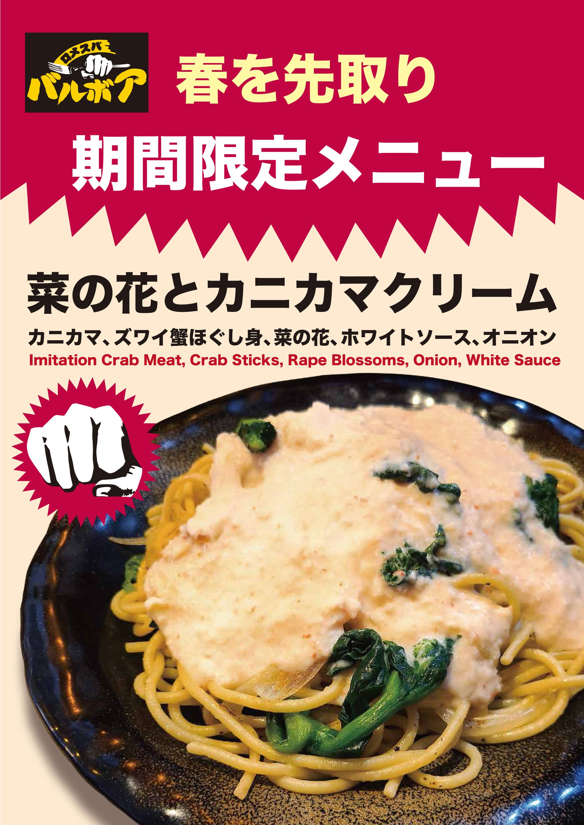 - 「ロメスパバルボア」 スペシャルメニュー「菜の花とカニカマクリーム」 販売概要