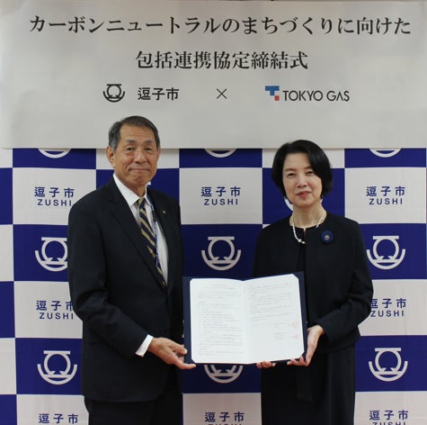 東京ガス株式会社(社長:笹山 晋一、以下「東京ガス」)は、このたび、逗子市(市長:桐ケ谷 覚)とカーボンニュートラルのまちづくりに向けた包括連携協定(以下「本協定」)を締結しました。