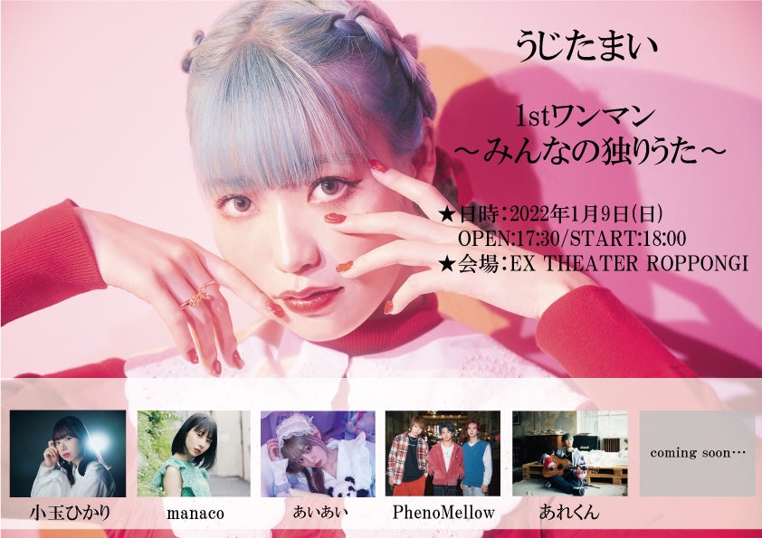 TikTok発マルチクリエイター・うじたまいの初ライブにあれくん、manaco、ぁぃぁぃ、PhenoMellow、小玉ひかりらゲスト参加決定!!