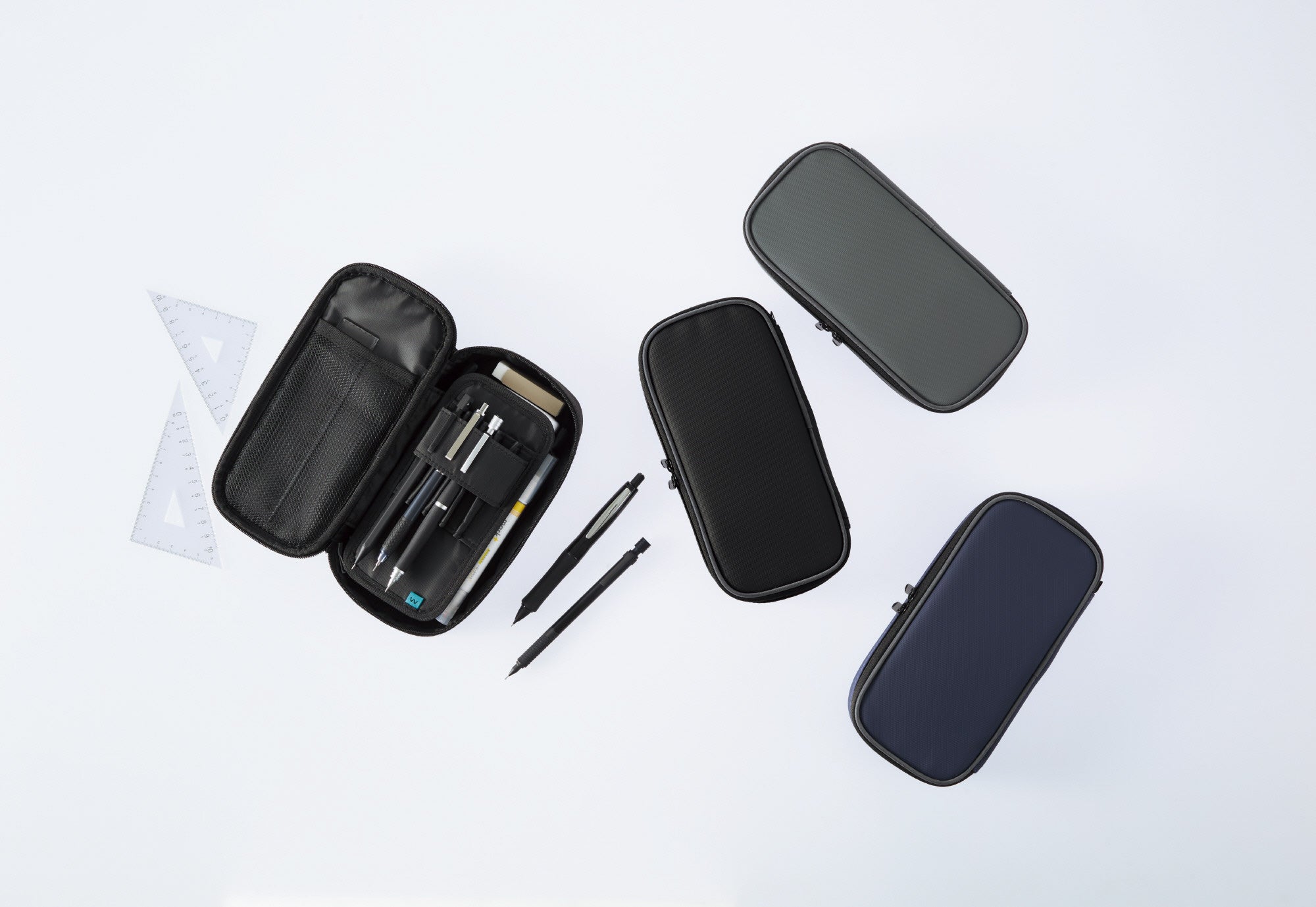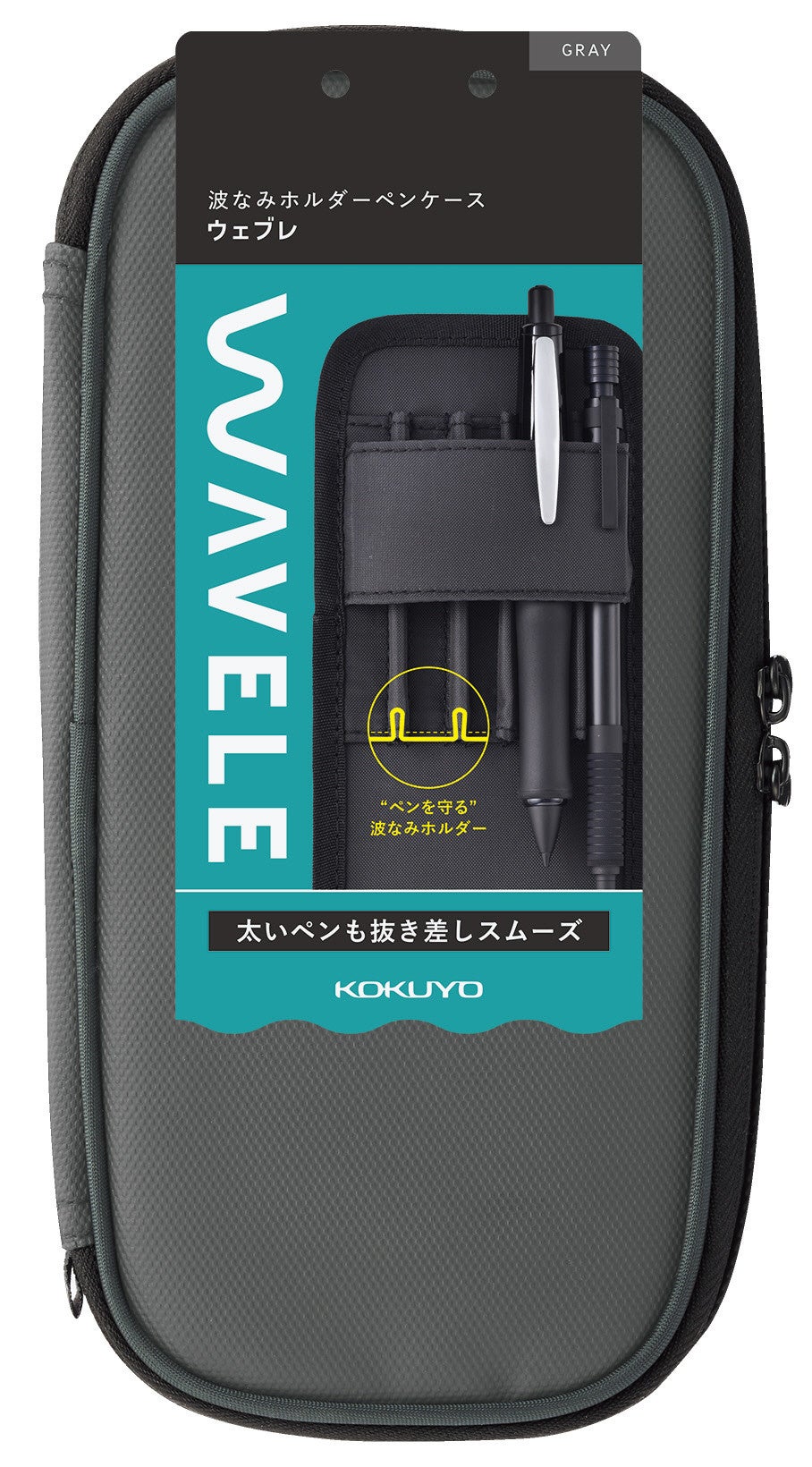 近年、デザイン性の高さや書き心地の良さから、中高生の男子を中心に高級シャープペンシルが人気を集めており、ペンホルダー付きのペンケースへの関心が高まっています。一方で、太さのバリエーションも多様な筆記具を並べて収容したいが、ペンホルダーの材質や構造によっては特に太い筆記具の抜き差しがしにくいとの声もありました。今回搭載の “波なみホルダー”はこうした課題を解消し、太軸の筆記具も無理なく収容できるので、お気に入りの筆記具をより快適に持ち運ぶことができます。