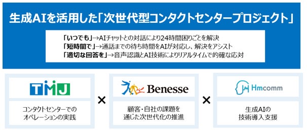 ベネッセが、TMJ、Hmcommと、生成AIを活用した「次世代型コンタクトセンタープロジェクト」を開始