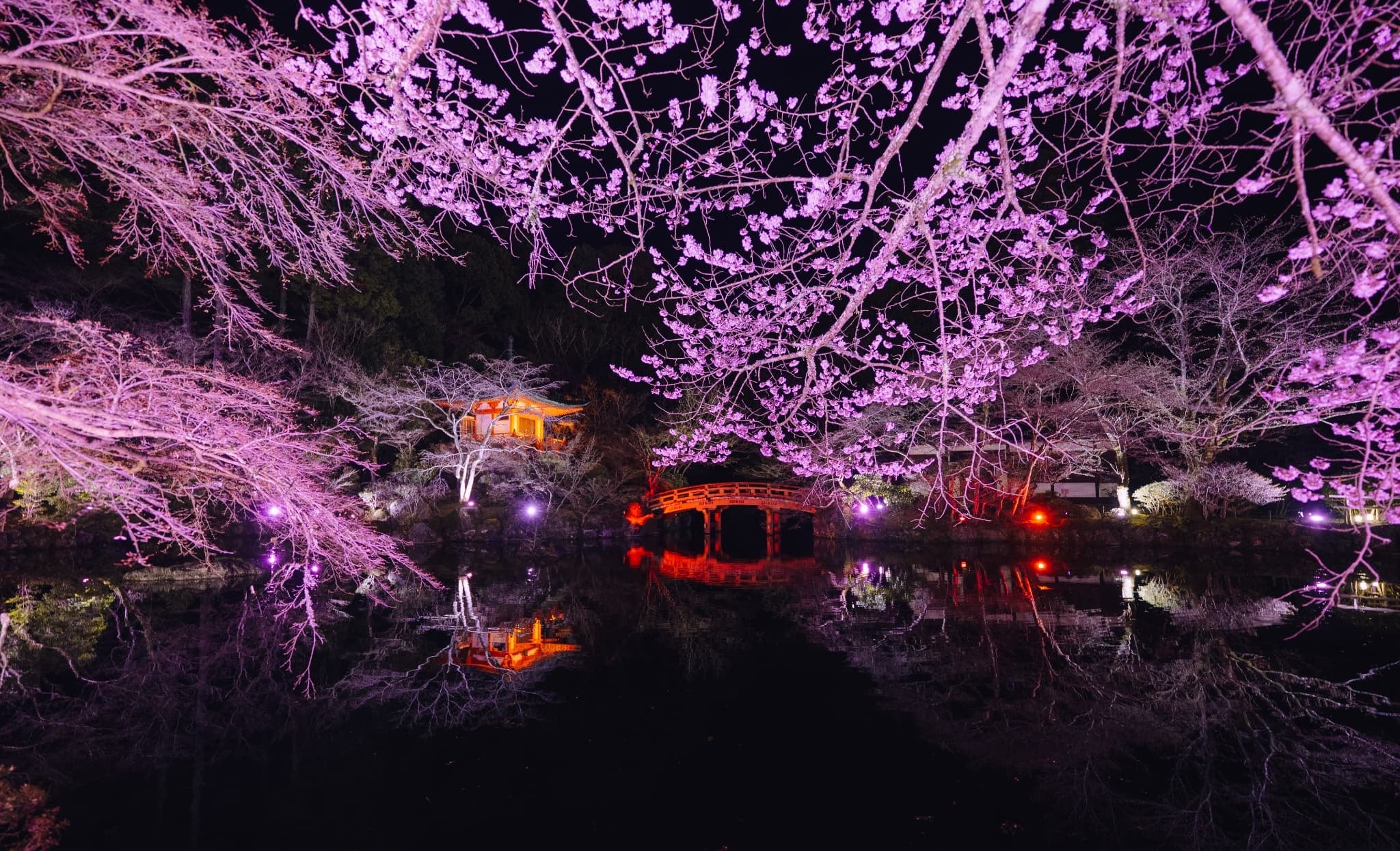 世界遺産・醍醐寺では現在、桜が見頃を迎え、春ならではの華やかな景色が広がっています。そんな醍醐寺を舞台に開催中の本展は、醍醐寺初の開催となる伽藍エリアを巡りながら、満開の桜とネイキッドによる幻想的なアート演出を楽しめる春の夜間イベントです。