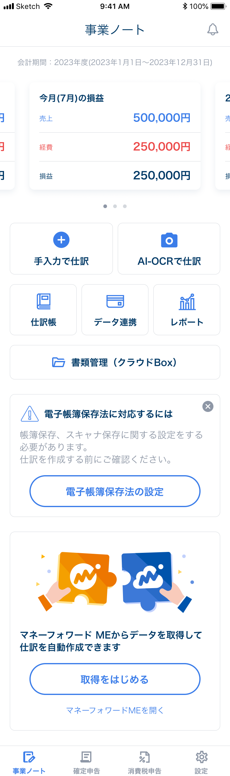 『マネーフォワード クラウド確定申告』は、個人事業主のための確定申告作業をラクにするクラウド型確定申告ソフトです。青色申告や白色申告に対応。確定申告書や青色申告決算書、収支内訳書など確定申告必要書類の自動作成が可能です。