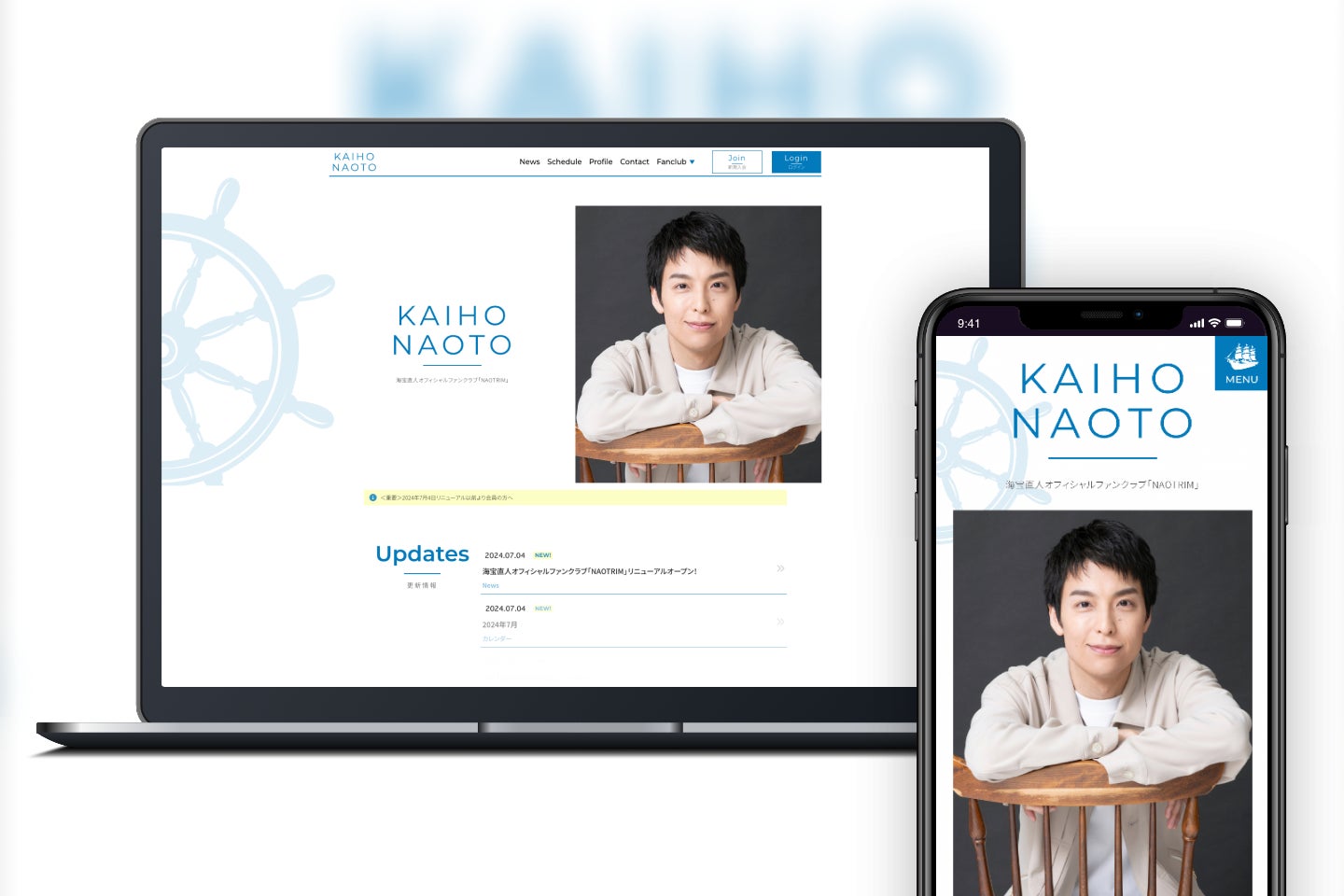 この度リニューアルオープンしたのは、海宝直人のオフィシャルファンクラブです。これまでのファンクラブコンテンツを引き継いだ「そのままプラン(スタンダード)」に加え、「そのまま+プラン」を開設しました。同プランではカレンダーなどのコンテンツも新たに追加し、これまで以上に海宝直人の魅力をたっぷりお届けしています。また、「海宝直人の航海が順風満帆でありますように」との願いから、自身の名前と船のバランスを指す「trim」を組み合わせた「NAOTRIM」というファンクラブ名に合わせて一新されたサイトデザインにもぜひご注目ください。