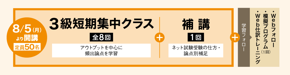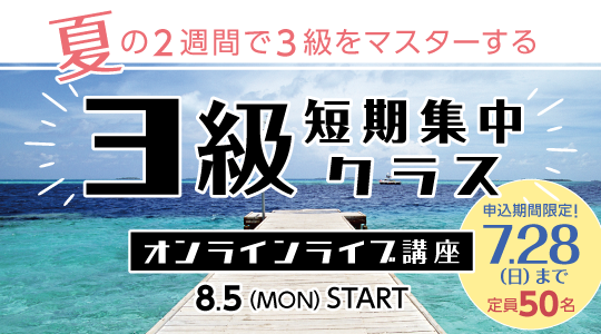 毎年満員御礼の人気コース「夏の3級短期集中クラス」がオンラインライブ講座で登場!
