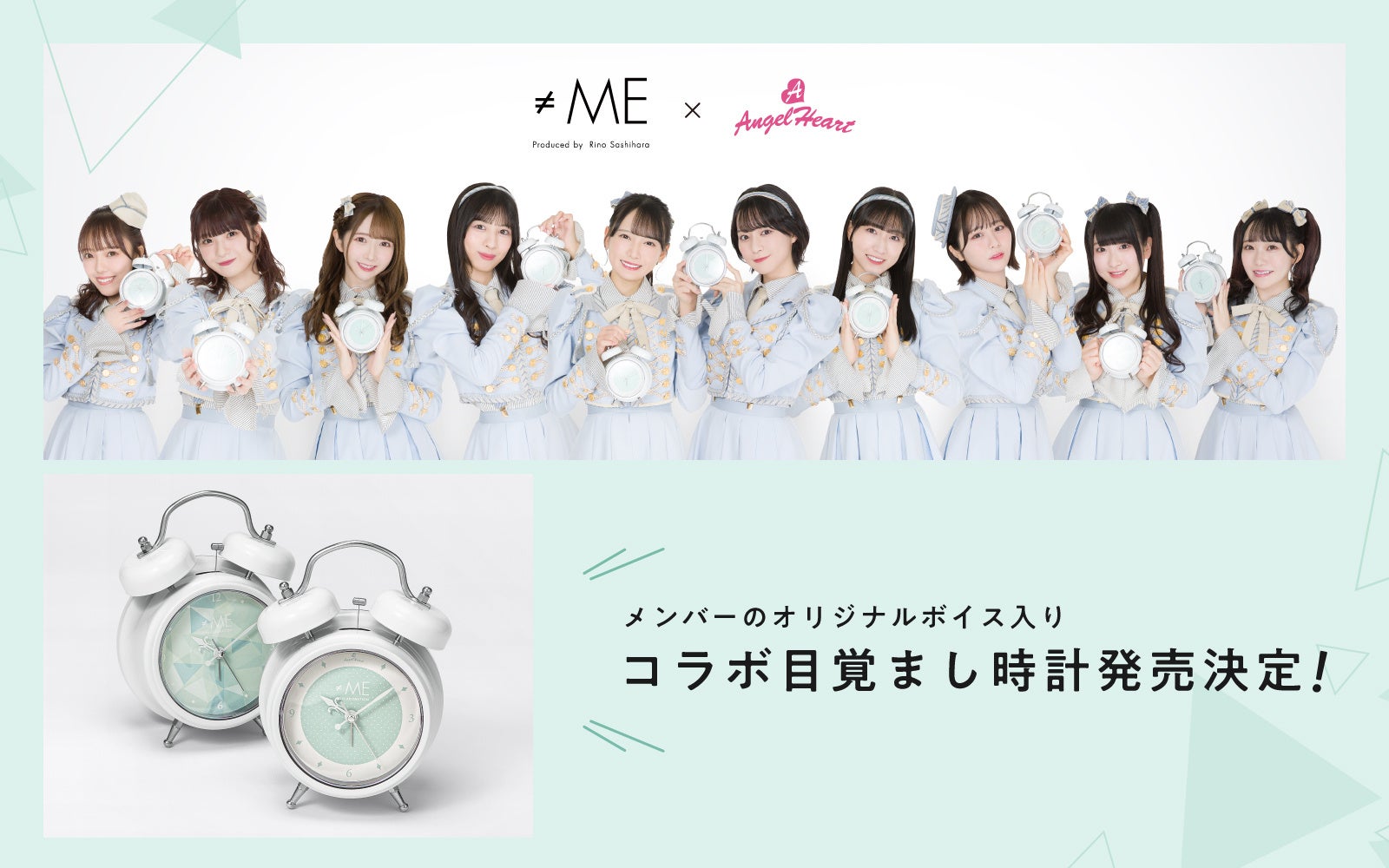 昨年姉妹グループ『=LOVE』とのコラボレーション目覚まし時計が大変ご好評をいただき、『 ≠ME 』の目覚まし時計を熱望するお声を多数頂戴したことに加え、『 ≠ME 』の可愛らしくも爽やかなグループイメージがAngel Heartと爽やかな朝の目覚めにマッチし、コラボレーションに至りました。