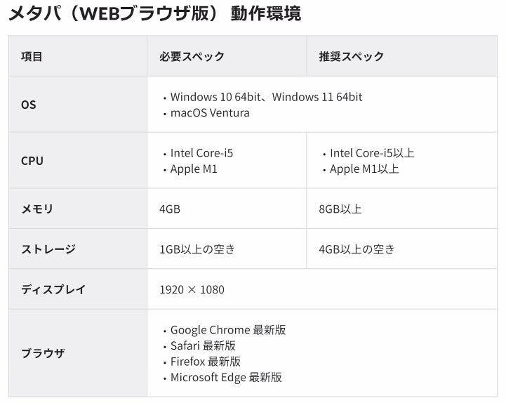 Web版「メタパ®」URL: https://metapa.app/web/user