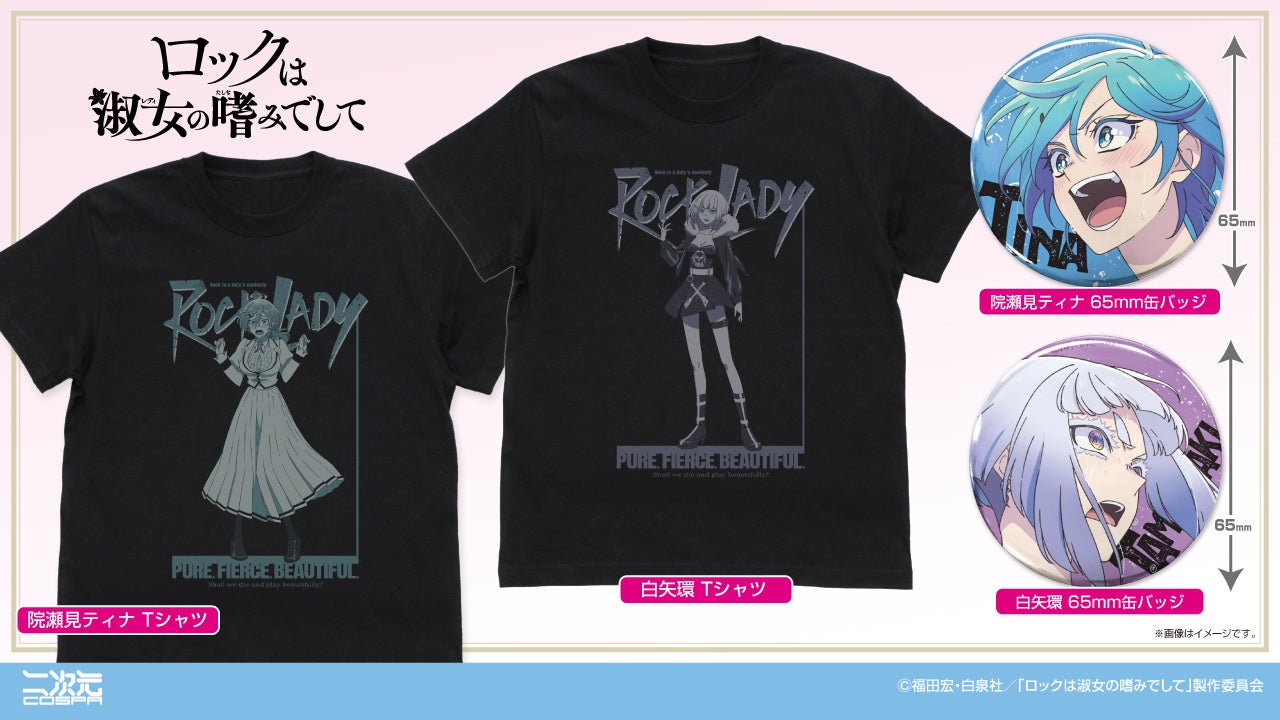 『ロックは淑女の嗜みでして』より、「鈴ノ宮りりさ」「黒鉄音羽」たちのTシャツと缶バッジが登場!【株式会社コスパ】