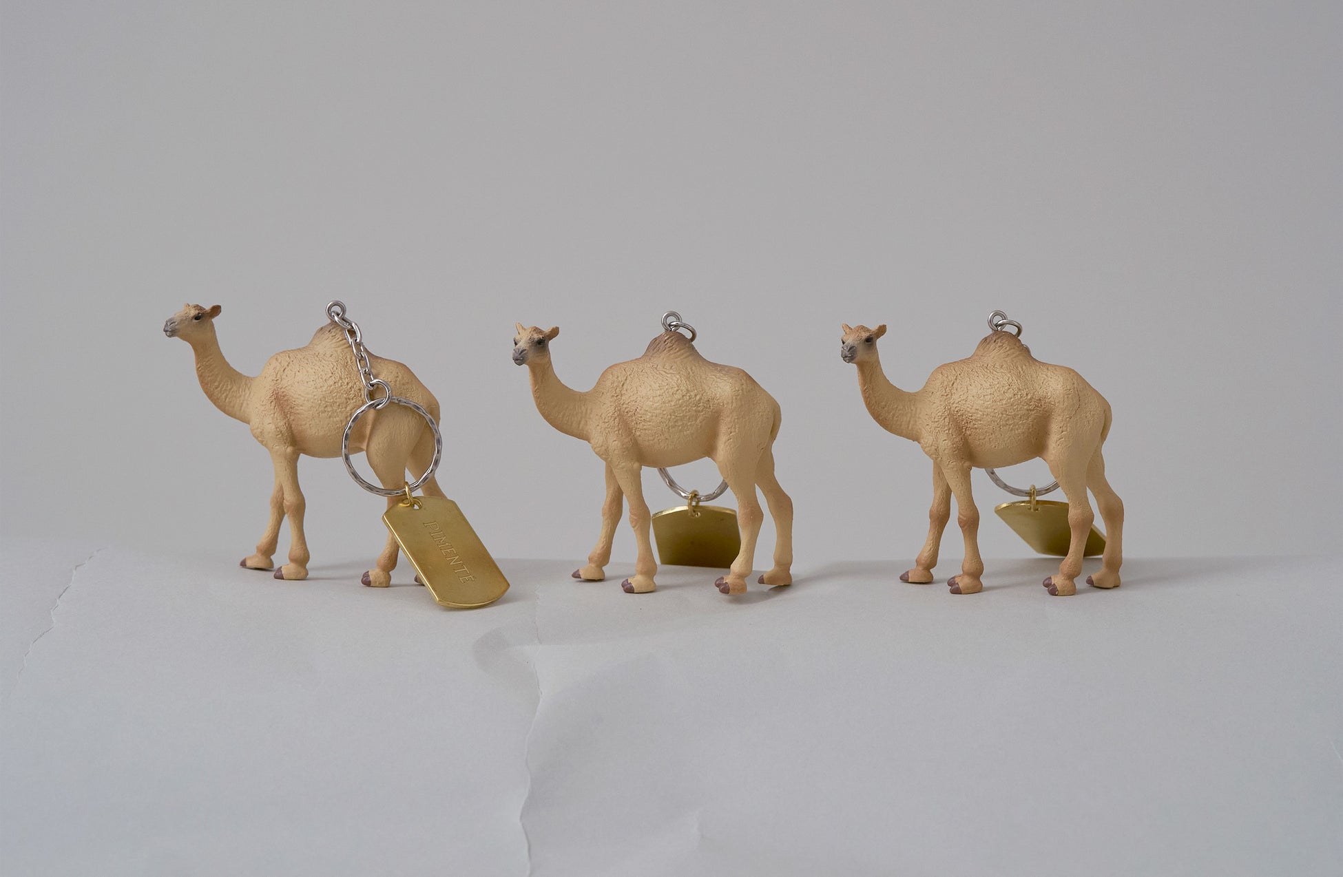 トートバッグやお持ちのバッグに付けて楽しめるラクダのバッグチャーム。PIMENTÉのロゴが入った金のプレート付きです。