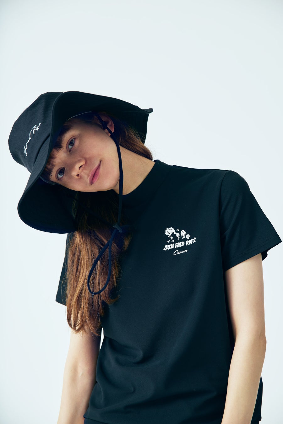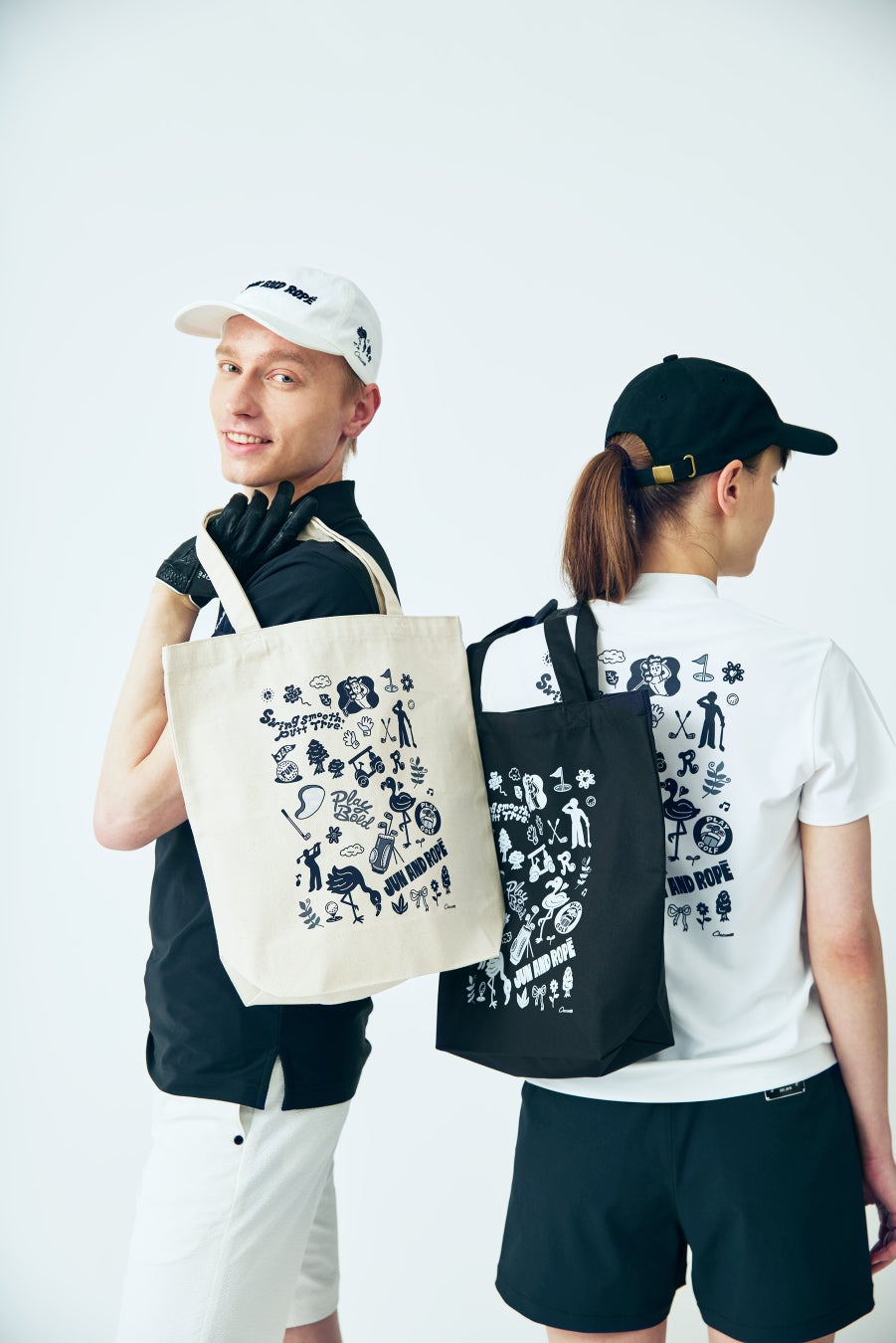 「JUN&ROPÉ」は、ゴルフを楽しむときのワクワク感や好プレー時の高揚感を表現したアートワークを制作依頼。ブランドのアイコンでもあるフラミンゴやゴルフにまつわるモチーフが配置された総柄のパターンなどをシンプルに落とし込み、ゴルフシーンはもちろん、デイリーにも取り入れやすいコレクションに仕上がっています。