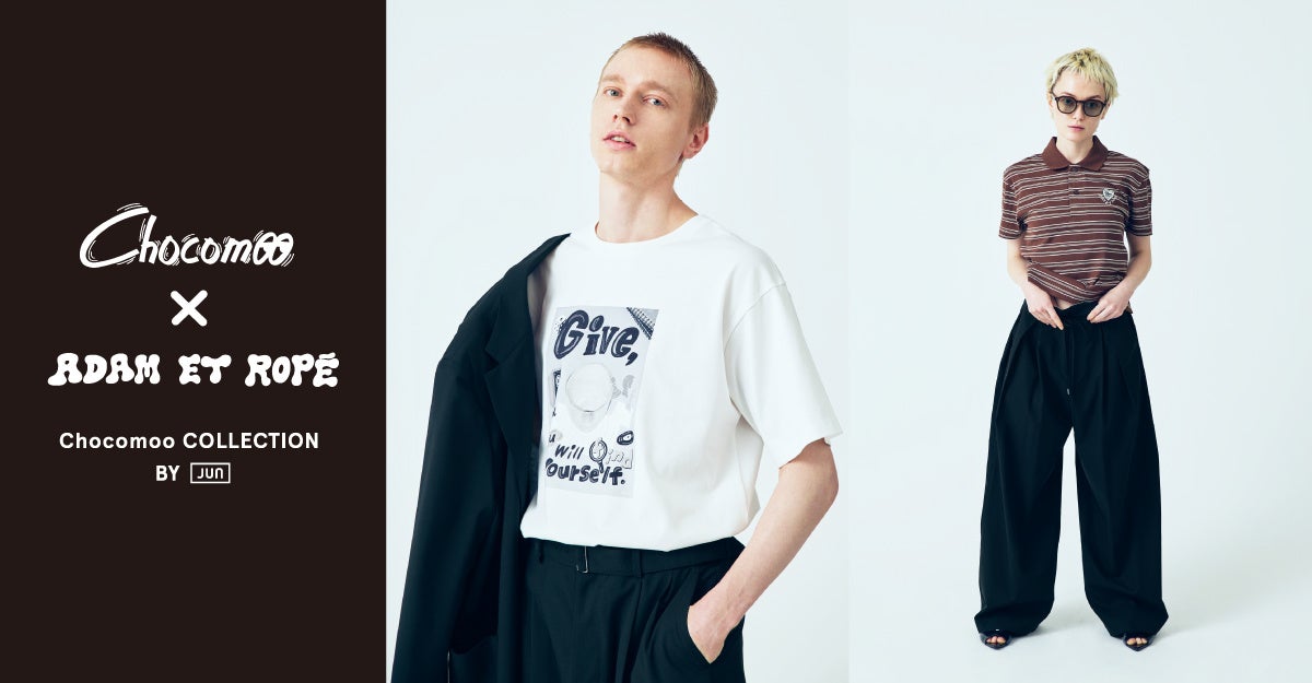 「ADAM ET ROPÉ」は、ブランドの根底にあるキーワードでもある“ミニマル” や “スタイリッシュ”といったイメージをもとにコレクションを展開。Chocomoo氏の代表的なモチーフをワンポイントであしらったアイテムや、ミニマルな写真にポップなレタリングを加えたTシャツなど男女問わず楽しめるユニセックスなラインナップが揃います。