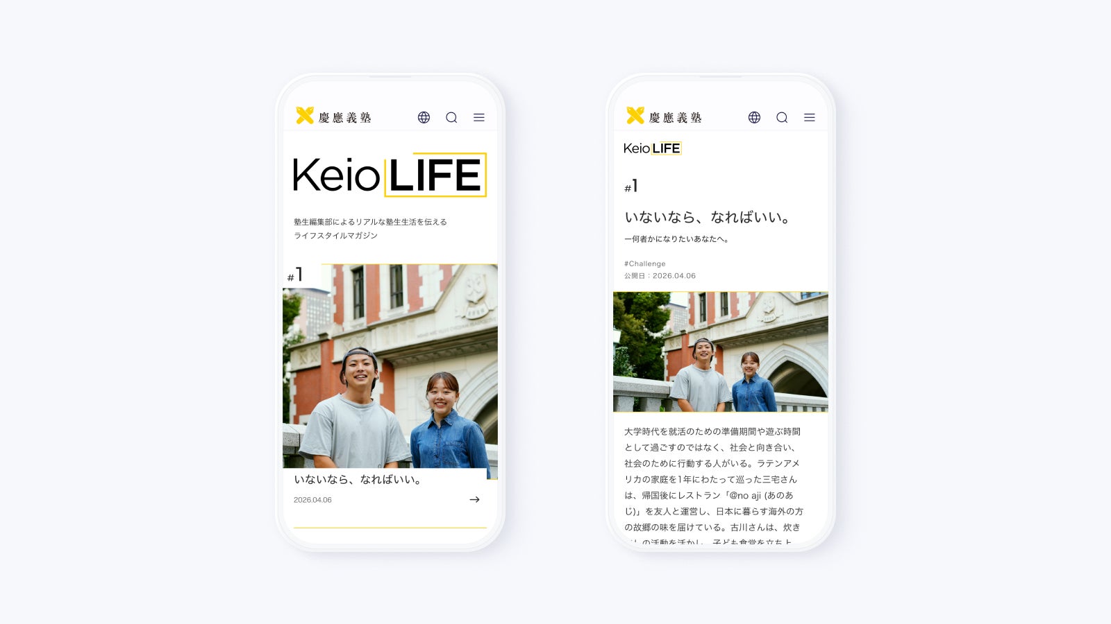 フルリニューアルと合わせ、新規コンテンツとしてサイト内に「Keio LIFE」の連載を開始しました。
