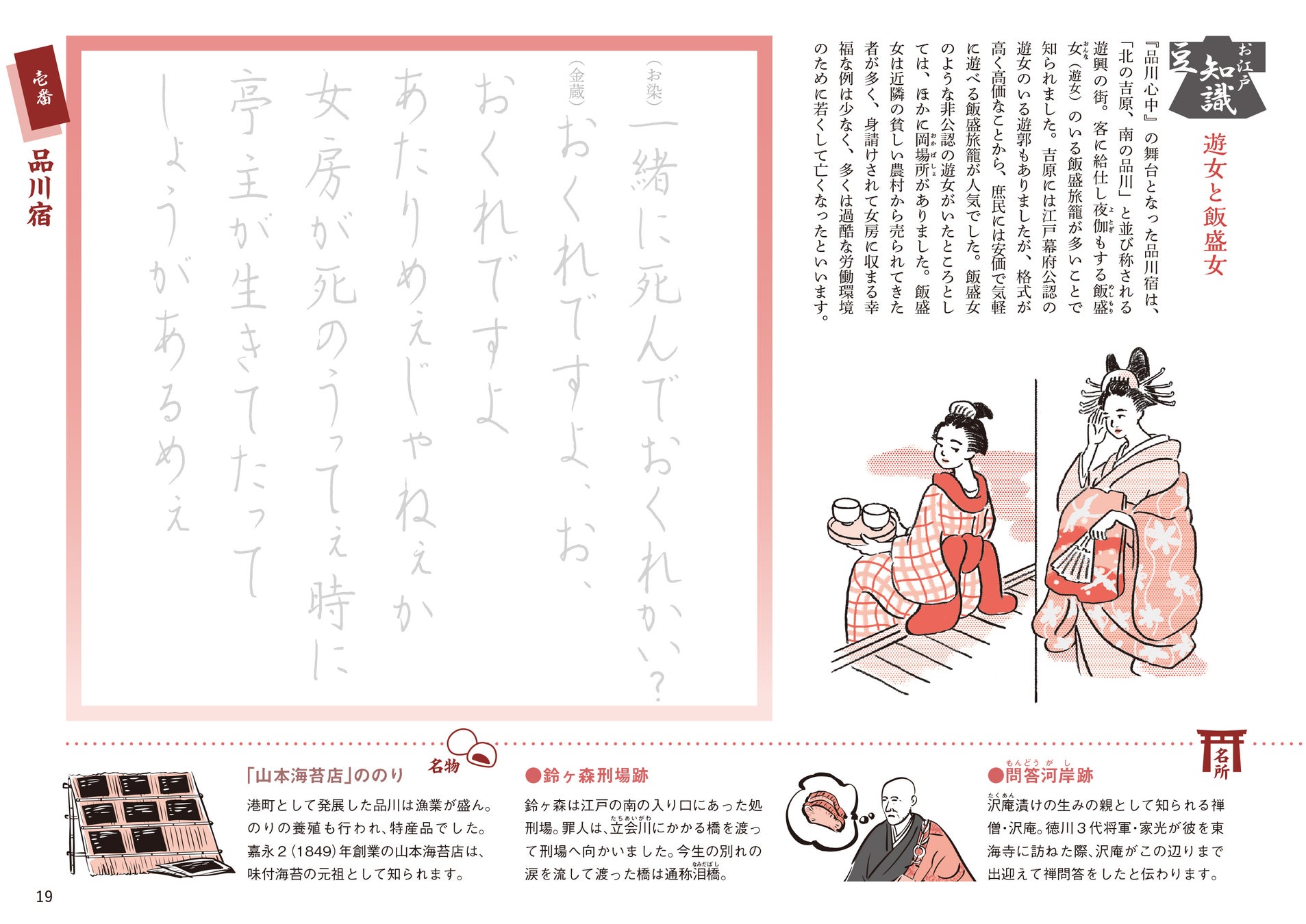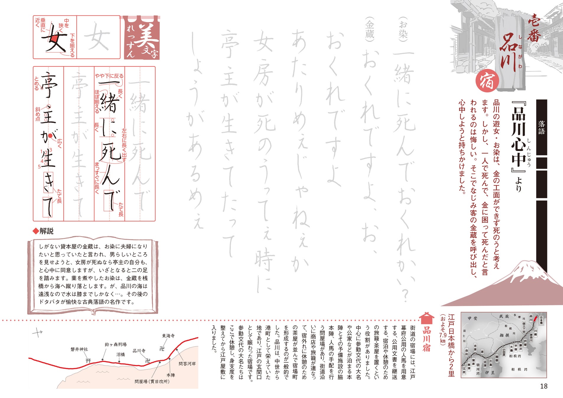 ・お手本は、歌舞伎や落語、俳句に馬子唄…いろんなジャンルの名文から、五十三次それぞれの宿にゆかりの作品をセレクト