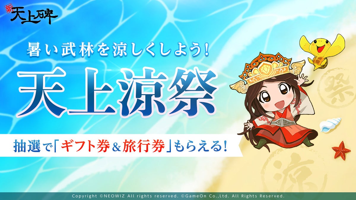 中国武侠MMORPG『新・天上碑』 旅行券やギフト券が当たるゲーム内イベント「天上涼祭」を実施!ログインだけでエントリー完了のキャンペーンも!