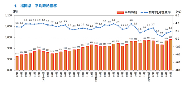 ■福岡県の平均時給は990円(前年同月972円、前月984円)