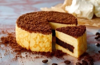 コーヒーシロップを染み込ませたココアスポンジ生地に、北海道産マスカルポーネとフランス産クリームチーズを使用したティラミスクリームを重ね合わせ、コーヒーパウダーと一緒にココアスポンジクラムをトッピングした、口どけのよいケーキです。