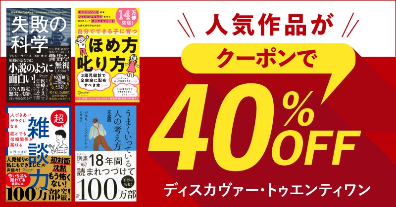 人気のタイトルを含むディスカヴァーの全書籍が、楽天Koboで40%オフになるクーポン配布中!
