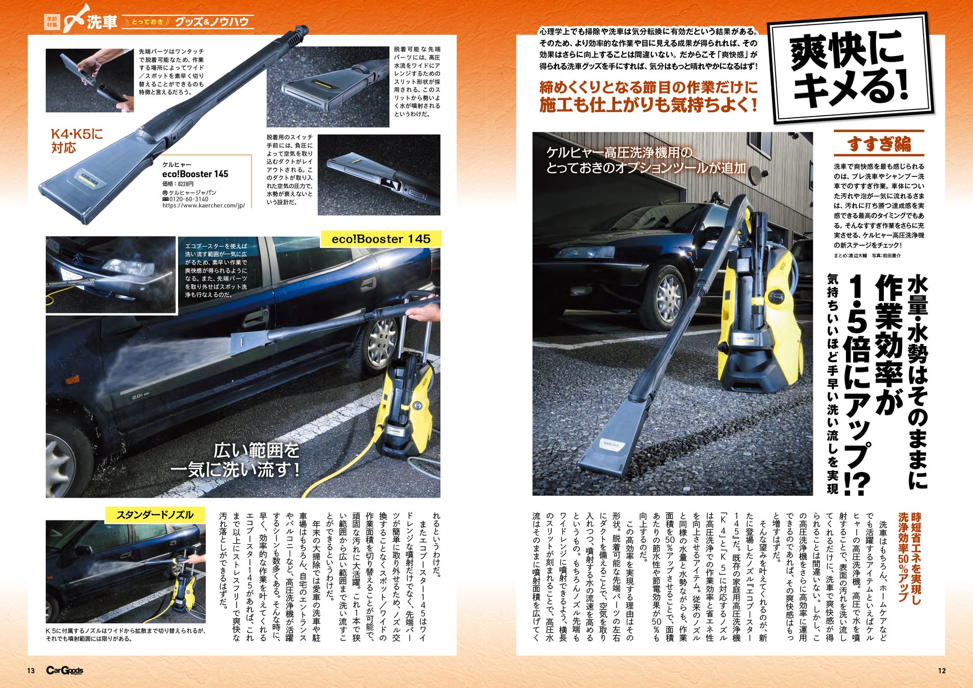 年末発売号として、まずは恒例のカーグッズ・オブ・ザ・イヤーの発表からスタート!今年一年を象徴する傑作を確認したあとは待ったなしとなる年末大掃除に向けたヒントを特集展開。