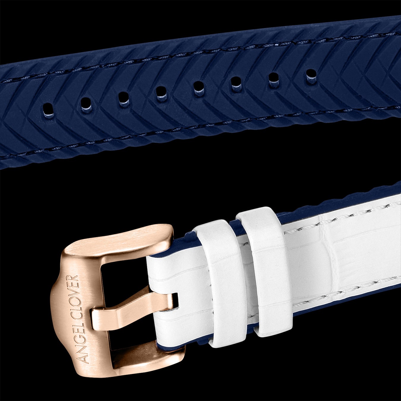 レザーの側面と背面に耐久性の良いラバーを圧着させた、ハイブリットベルトを起用。