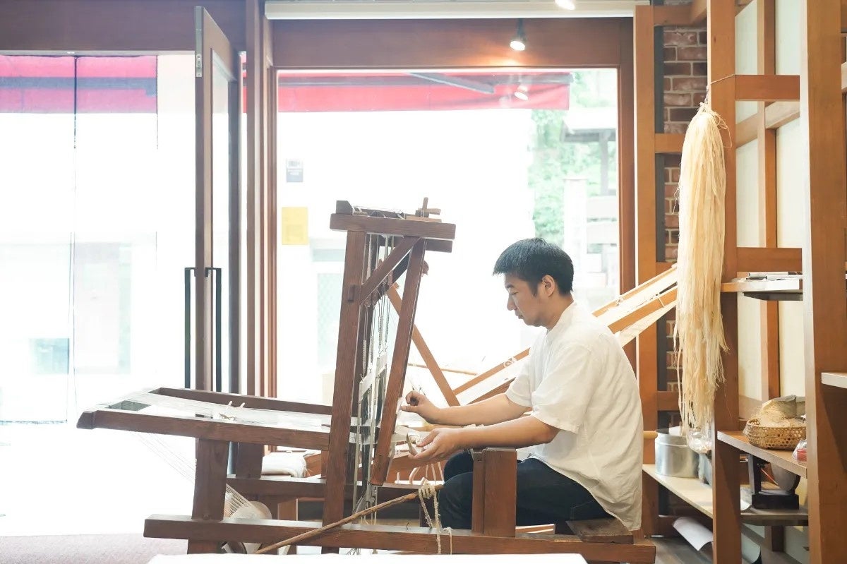 手紡ぎの糸を使い織り上げる奈良晒。数百年前から受け継いできた技術をモノづくりに活用してる