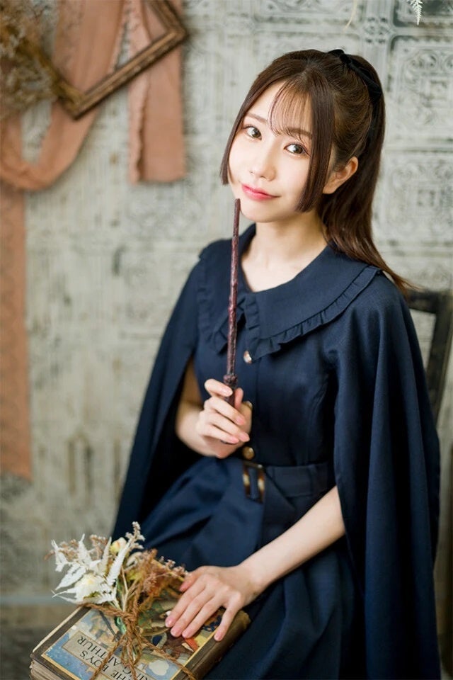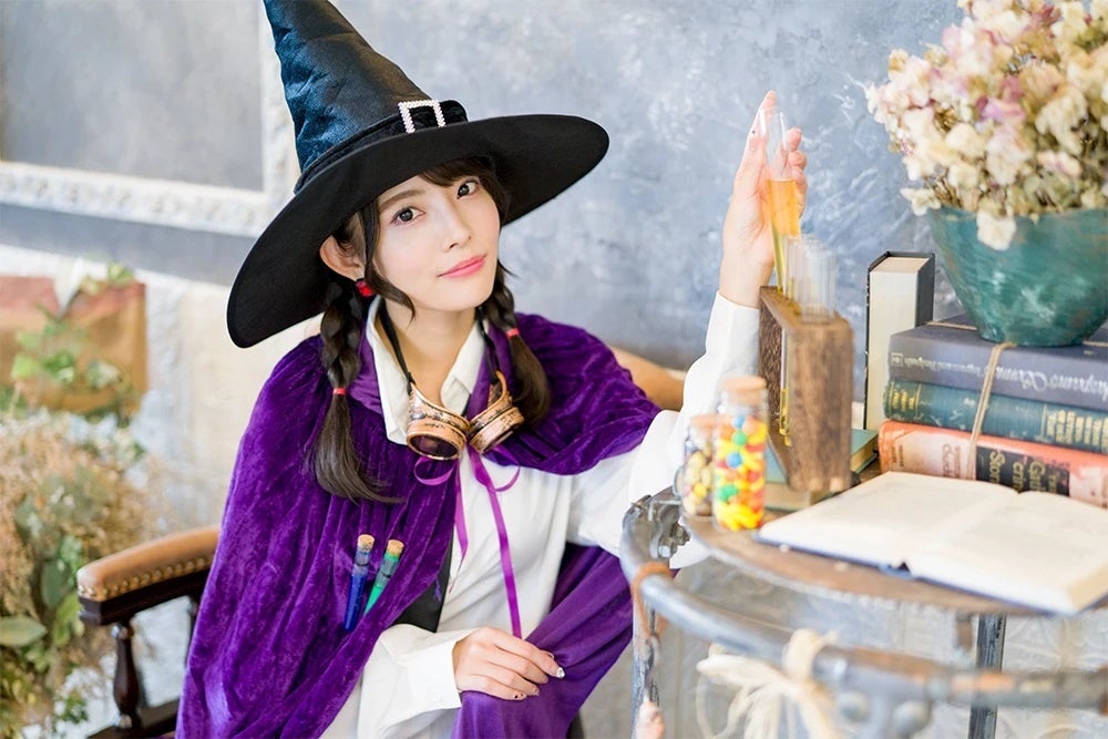 ①魔女と言えば……ですぐ頭に浮かんだのが、『おジャ魔女どれみ』でした。かわいい女の子って感じの魔女。私はあんまり似合わないかもしれないけど……意外性を求めてこの衣装にしました……!
