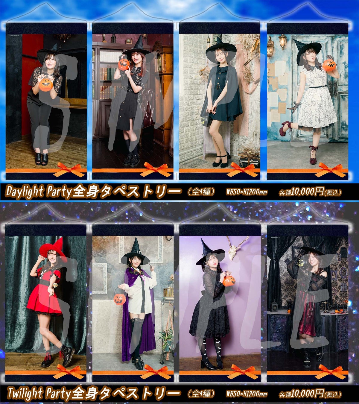 さらに、本日10月18日(水)18時より、キャスト全8名の縦長全身タペストリーの事前受注販売が開始! 魔女の仮装をした彼女たちの、非常にレアな姿のビッグなタペストリーとなっています。確実に手に入れたい方はこの機会をお見逃しなく。