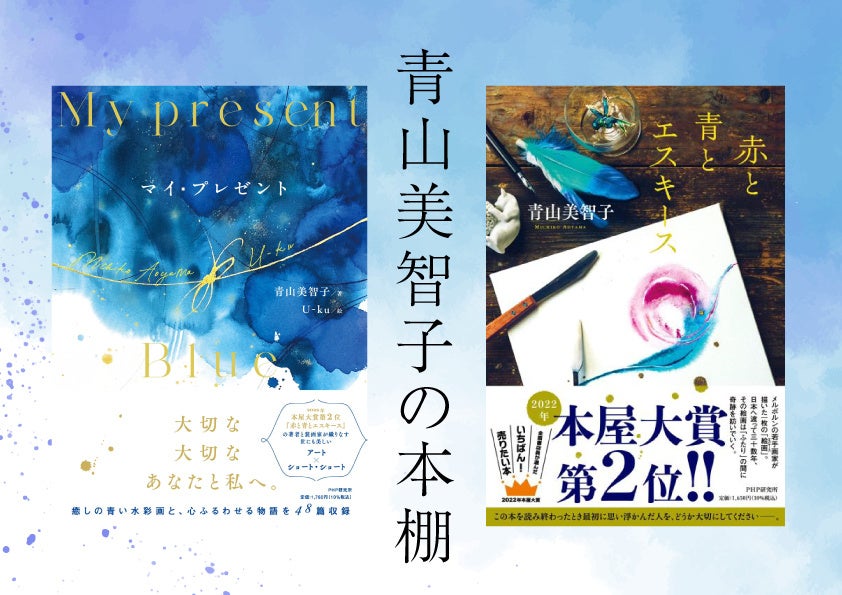▽今年7月に新進気鋭の水彩作家・U-ku(ゆーく)氏とタッグを組んだ『マイ・プレゼント』を上梓、文章×アートの融合と言葉の奥行・可能性を存分に魅せた小説家の青山美智子氏。この度は「作家・青山美智子」の誕生について、そして最新刊『マイ・プレゼント』と『赤と青とエスキース』(2022年本屋大賞第2位を獲得)を中心に、過去作のお話も伺います。