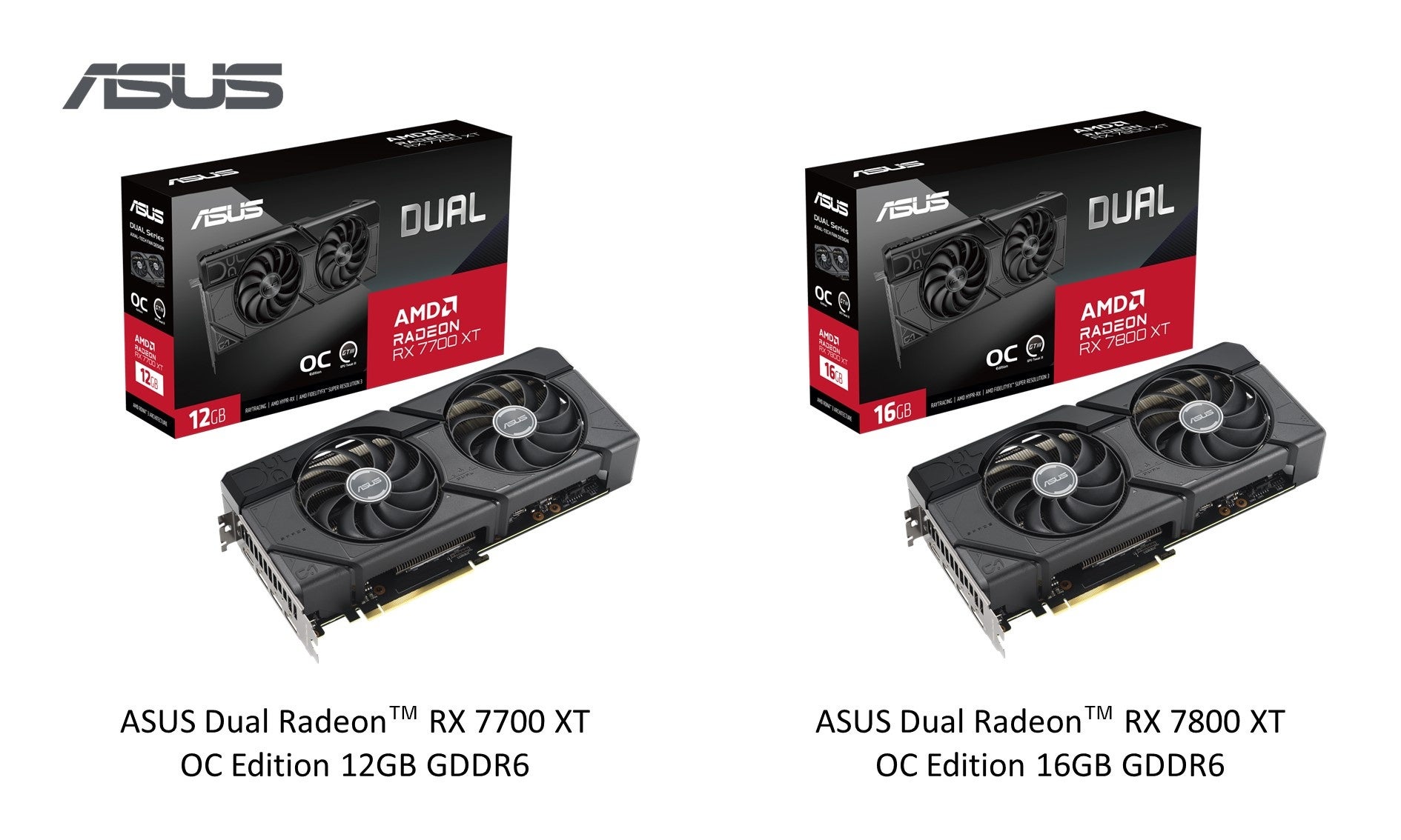 「DUAL-RX7800XT-O16G」「DUAL-RX7700XT-O12G」