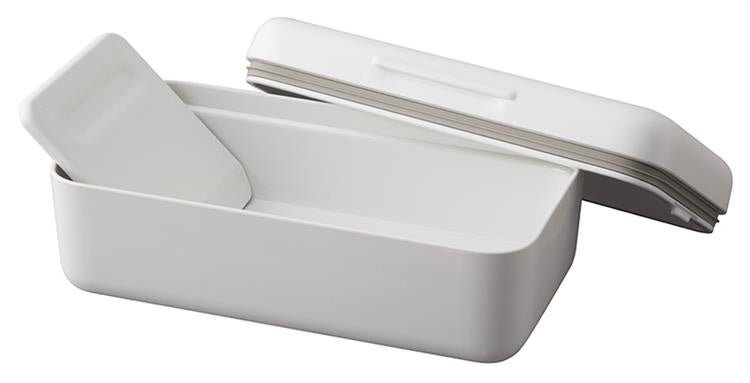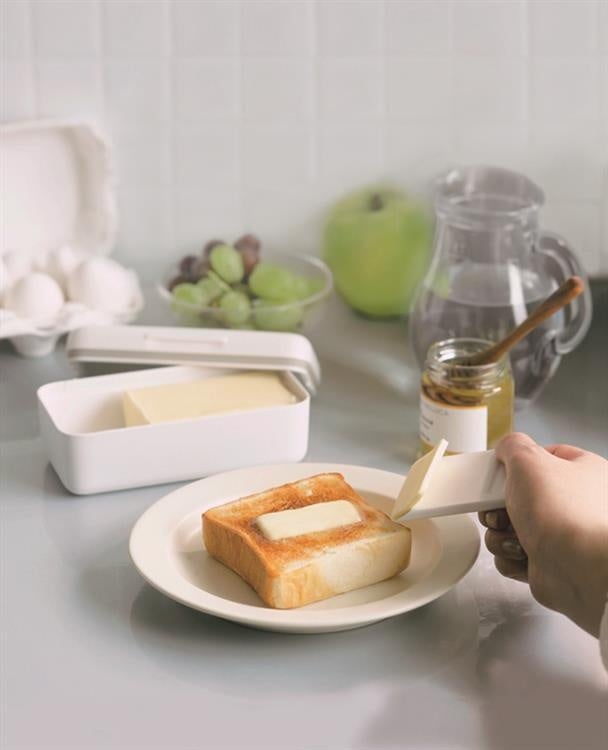 フタの裏に収納された付属のカッターで使うときにちょうど良い薄さに簡単に切り分けられます。乾燥やにおい移りがしにくいパッキン付き。バターが付きにくいので洗う手間が省けます。