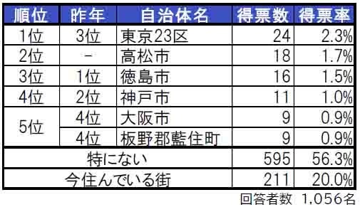 住みたい街は、1位東京23区。2位は高松市。3位徳島市。