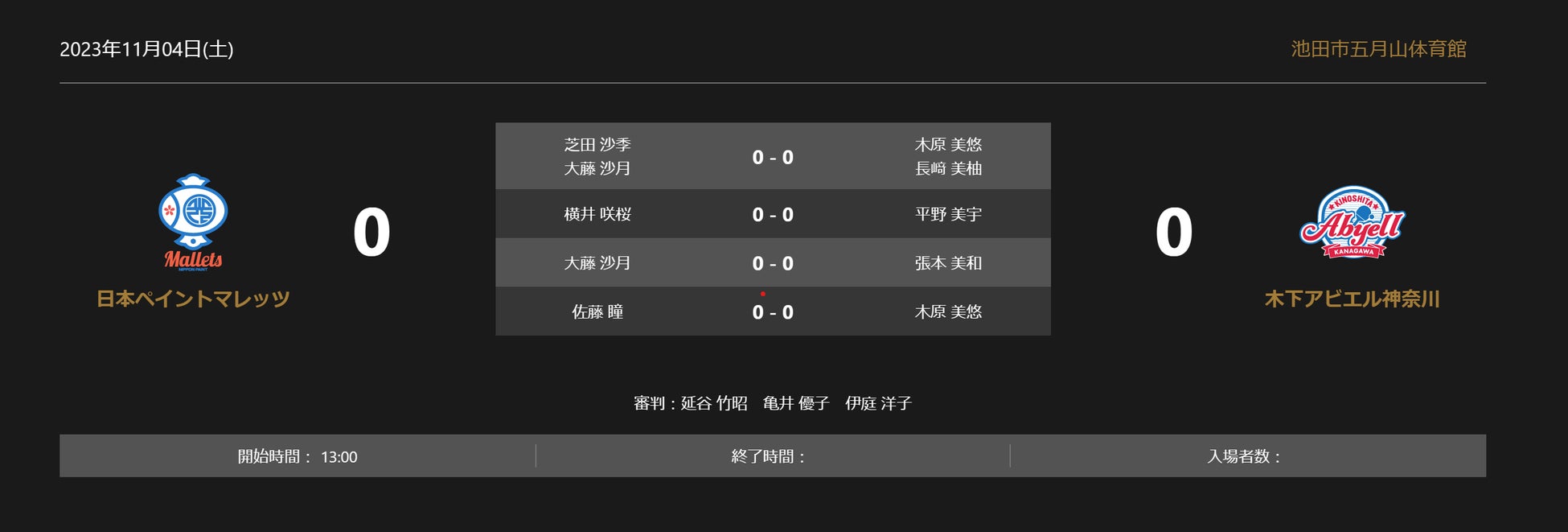 ノジマTリーグ 2023-2024シーズン 公式戦 11月4日開催 日本ペイントマレッツ vs 木下アビエル神奈川 対戦オーダー発表