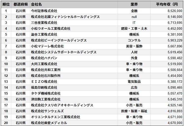 【2025年版】石川県の上場企業・平均年収ランキングを公開!/SalesNow DBレポート