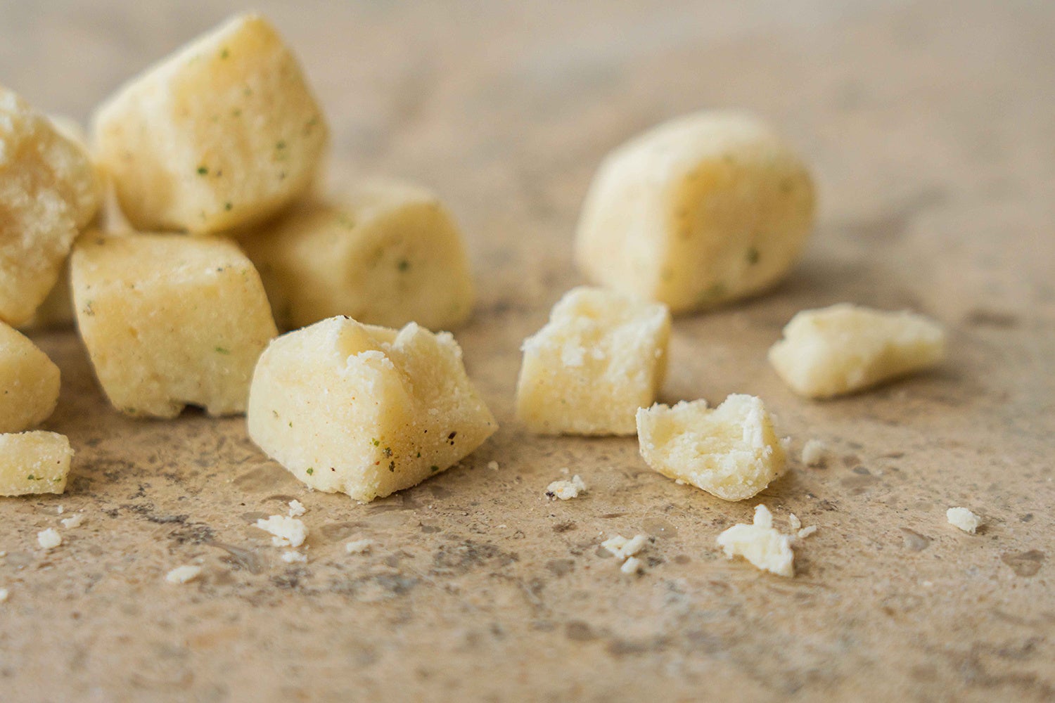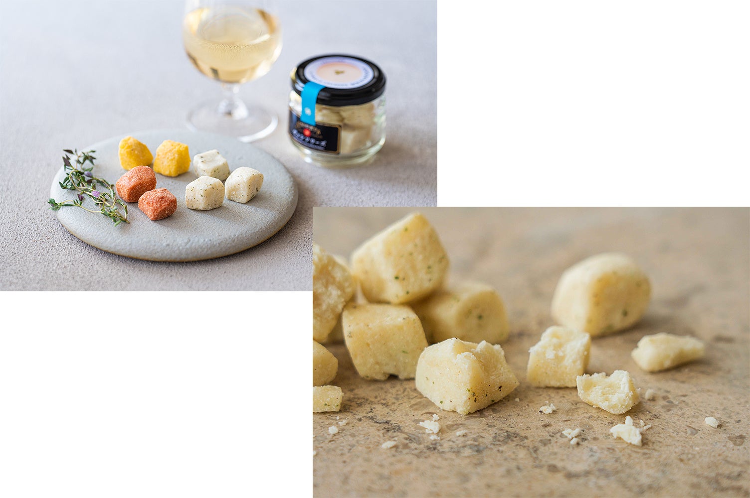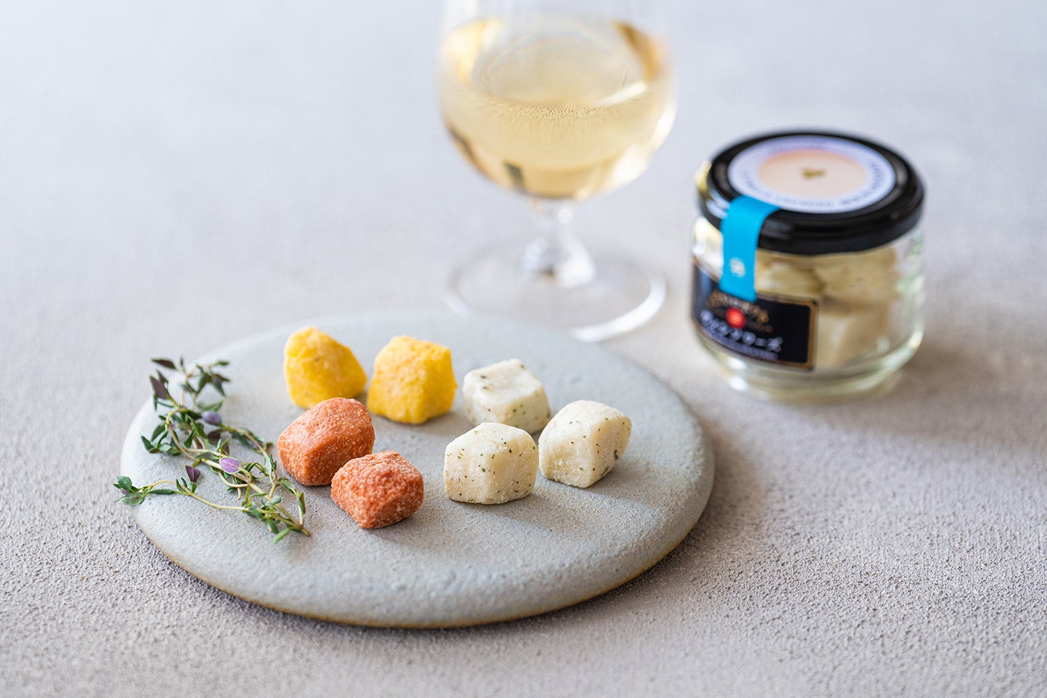 国産じゃがいもをひとくちサイズにカットし、そこへヴィシソワーズやミネストローネの味わいをたっぷり染みこませることで、ぎゅっと味が染み込んだ、クリーミーな一粒に仕上がりました。ひとくちサイズのじゃがいもをごろっと頬張ると、サクッとホロッと、とろけていきながら、じゃがいもの甘みとスープのコクが一体化した、濃厚で贅沢な味わいが広がります。