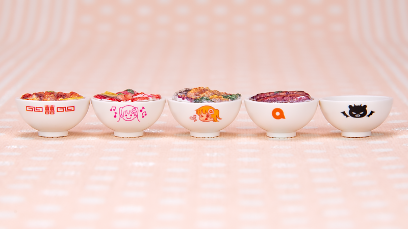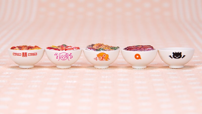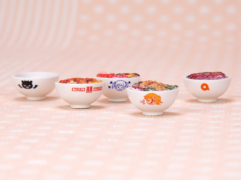 細部にまでこだわった造形にカラフルな印刷が好評のシリーズで、今回は『フィギュアのごはん Vol.1』をベースに、どんぶりに『あみこちゃん』のイラストが印刷されています。