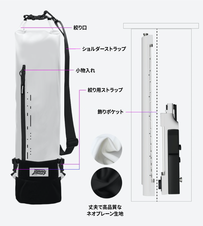 ふたつに解体してコンパクトに持ち運ぶこともできる「Jammy E」。