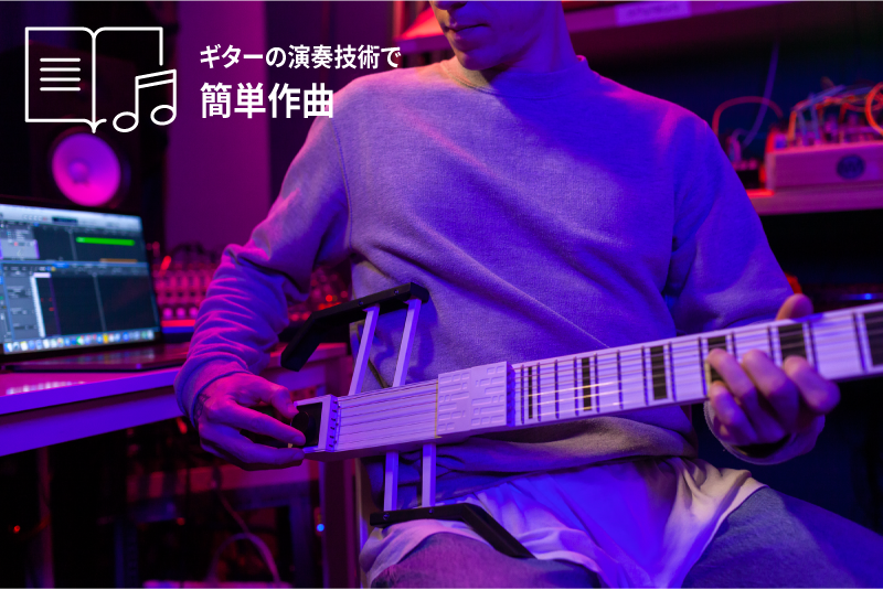 このギター型のコントローラーは、作曲用のDAWソフトに繋げば、ギターの演奏技術一つであらゆる楽器の音を奏でることができ、理想のメロディを一瞬で形にすることができます。