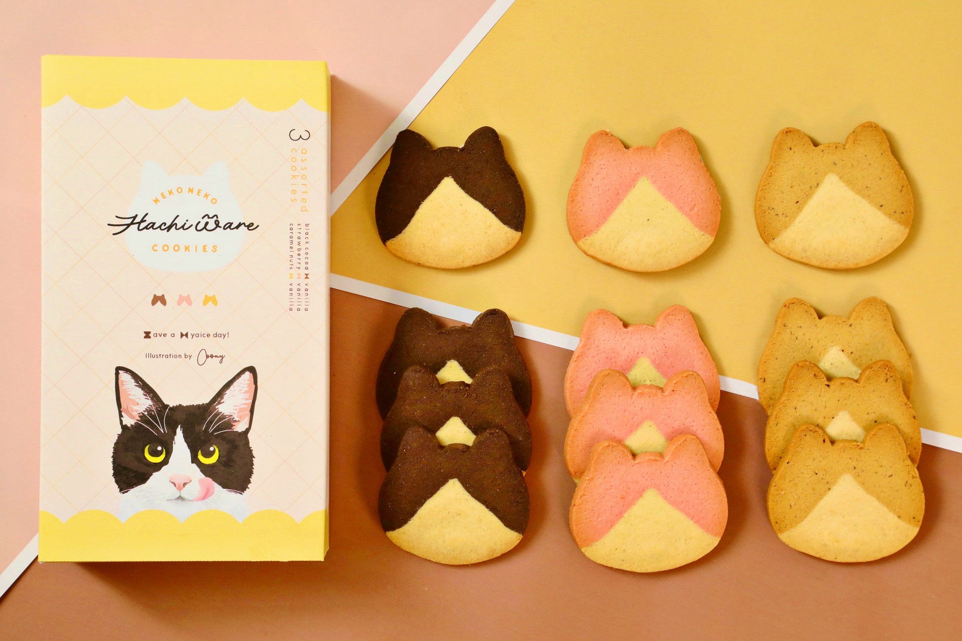 し、ふんわりしっとりな食感に焼き上げました。パッケージは、猫専門イラストレーター C