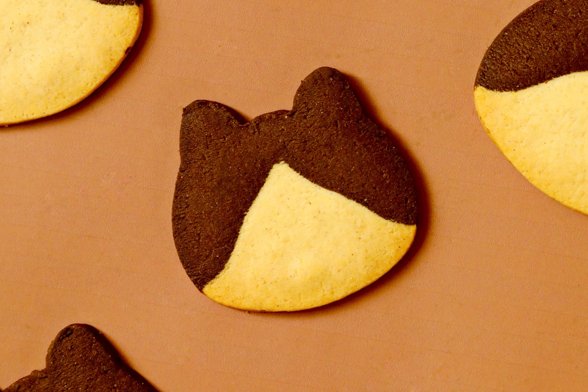 こだわり:バニラ香るプレーン生地とブラックココア生地で“はちわれ模様”に仕上げた、ブラックココ