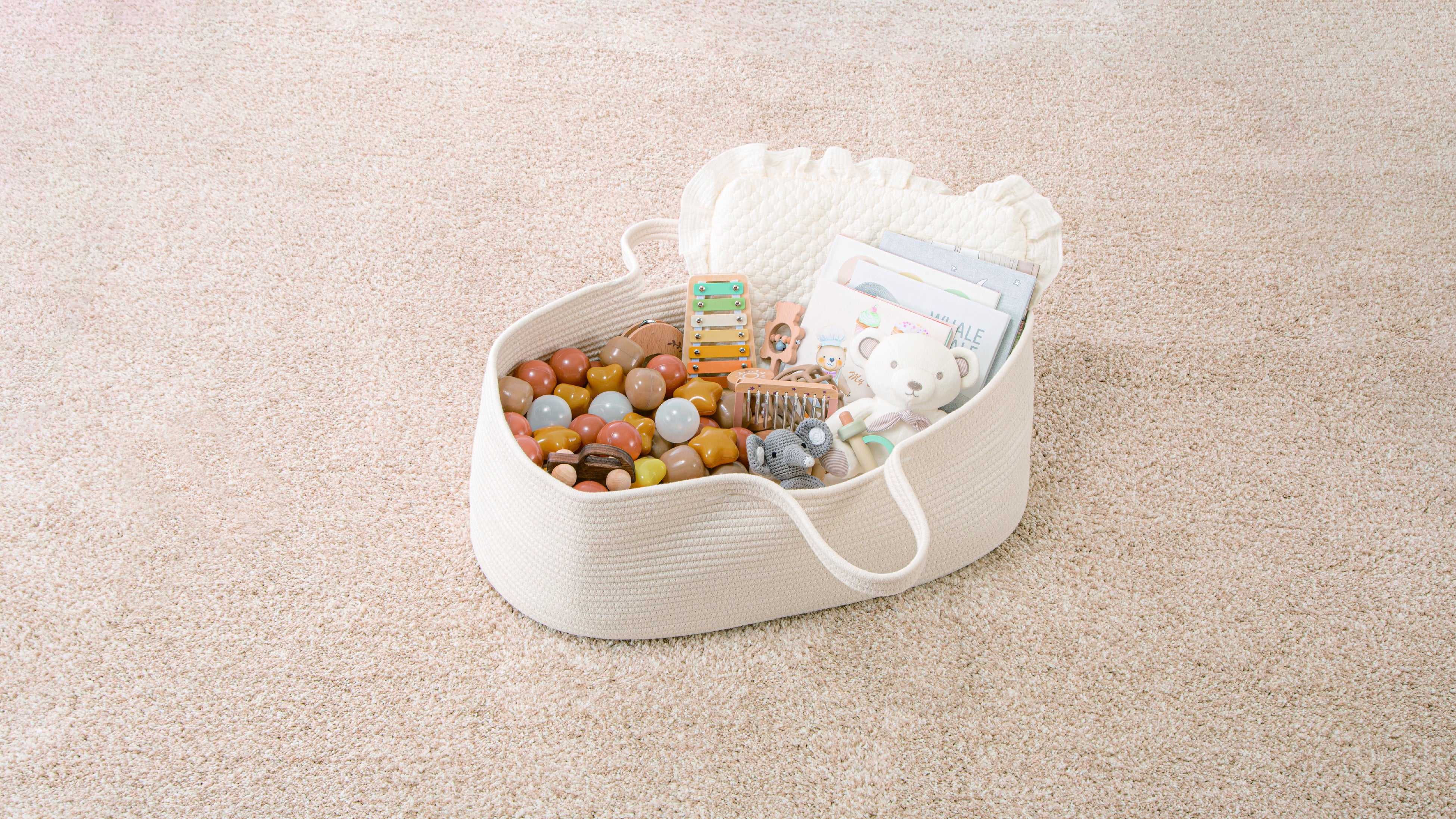 最後に、赤ちゃんのお世話に必要なアイテムをまとめて収納できる整理バスケットをご紹介します。