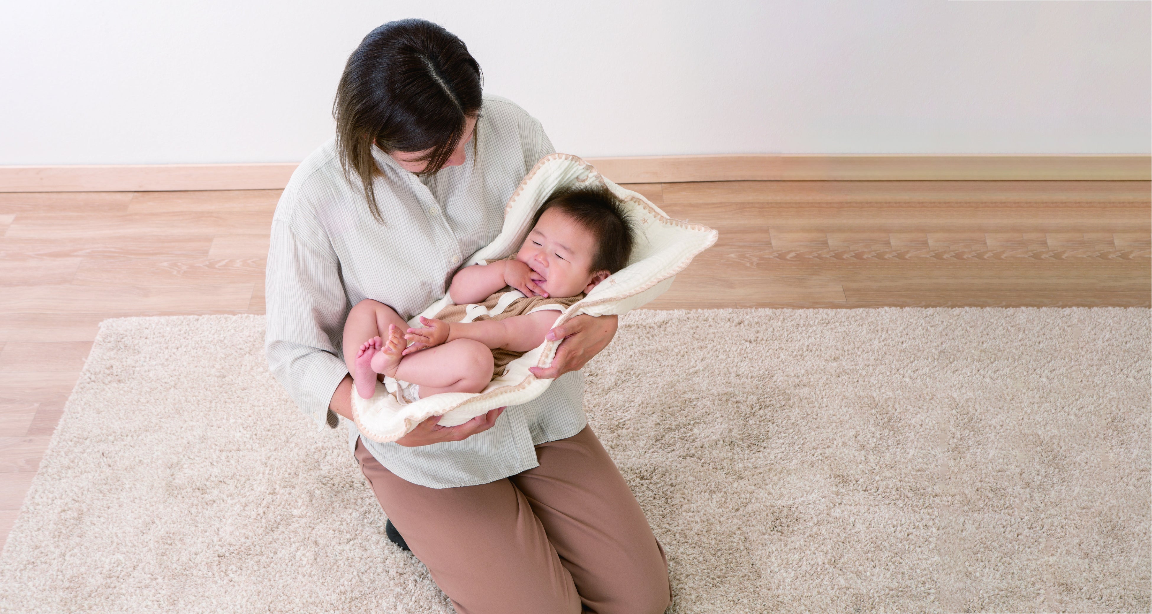 赤ちゃんとご家族の快適な暮らしに寄り添う新商品9点をご紹介します。インテリアに馴染みやすい柔らかな風合いと優しい色合いが特長です。毎日使うものなので、使いやすさも追求しました。