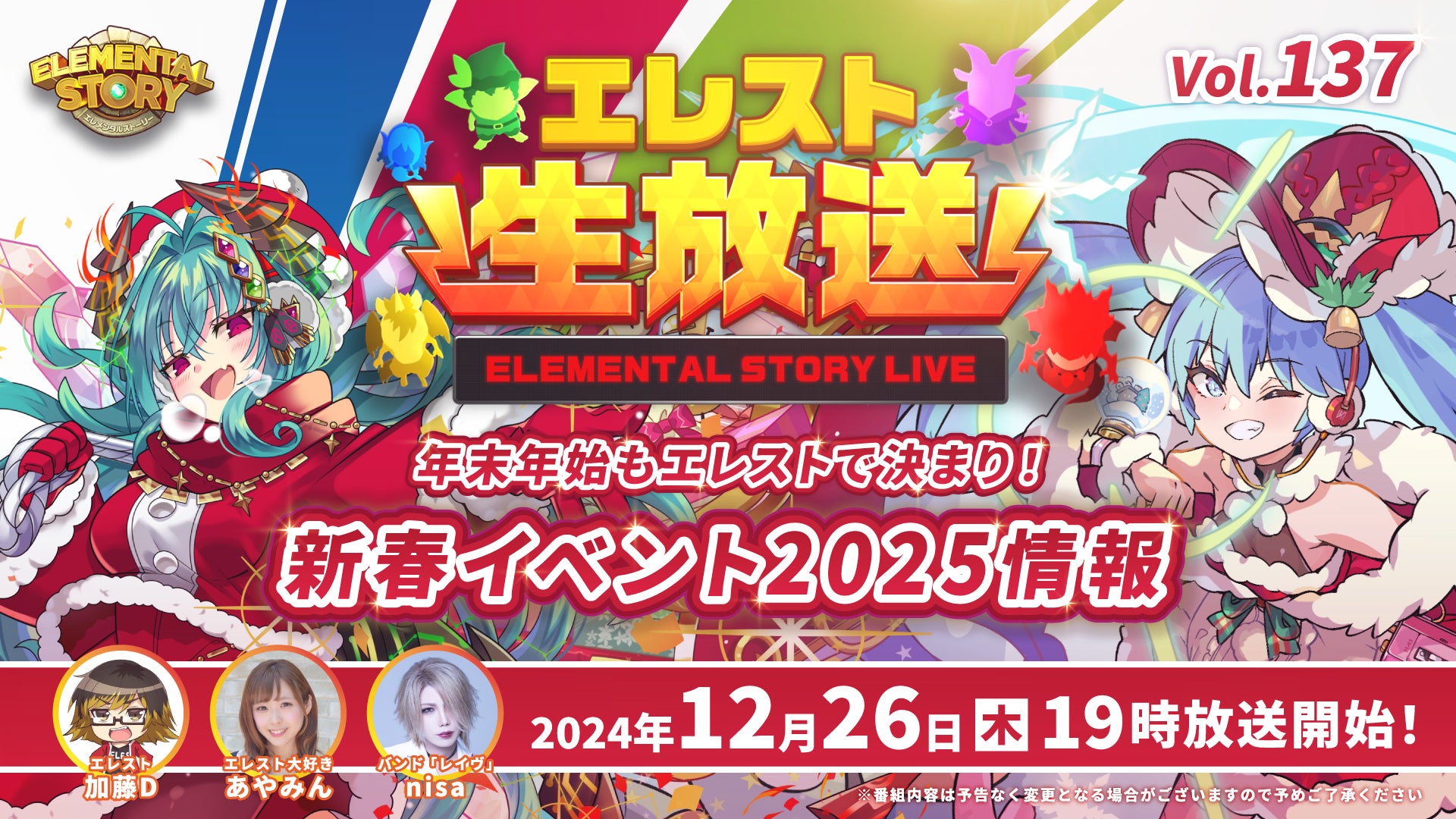 『エレメンタルストーリー』が、2024年最後となるエレスト公式生放送vol.137を12月26日(木)19:00より配信!新春イベントや豪華なキャンペーン情報を解禁!
