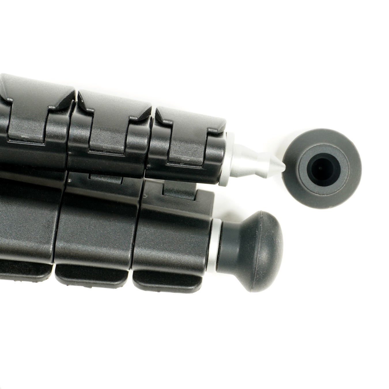 石突ゴムを取り外すとスパイクが出てくる、2重構造の石突を装備。 屋外の滑りやすい場所でも、しっかり三脚を設置できます。