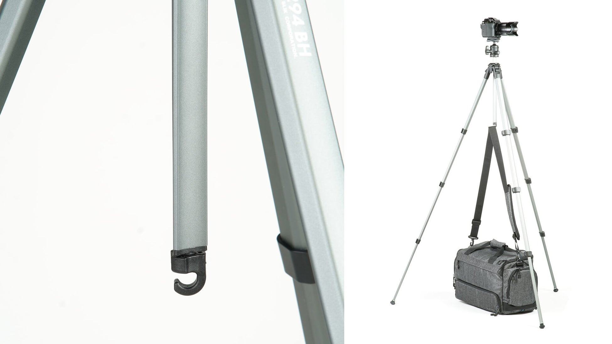 ウェイトフックにバッグ等をぶら下げることで、重心を下げ、三脚の安定性を高めることができます。 ウェイトフックを取り外すと、U1/4インチ雌ネジです。