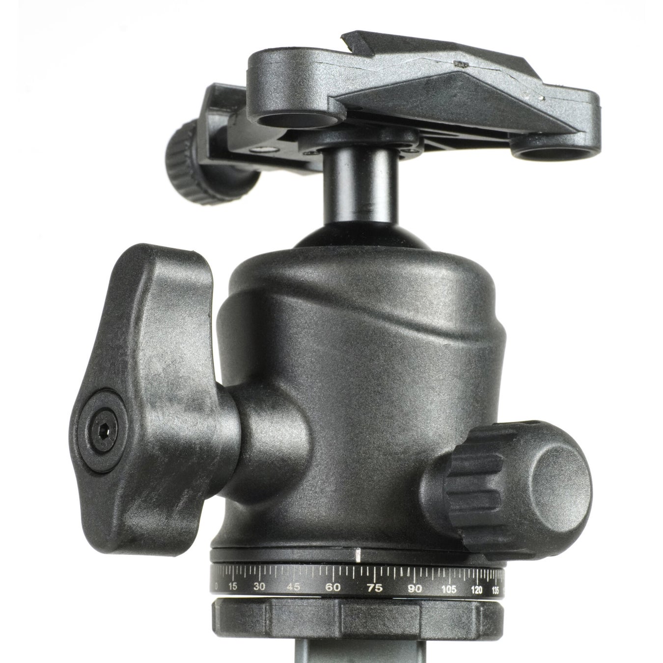 ロックが一か所で、まるで手持ちのような自由さで構図を変えられる自由雲台を装備。カメラの取り付けはアルカ互換のクイックシュー式。直感的に構図を変えられるので、非常に便利です。