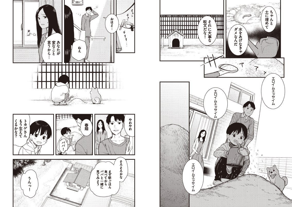 伊原直人は、妻の美雪、息子の春翔と共に幸せな生活を送っていた。しかし、念願のマイホームを購入した矢先、美雪が交通事故で命を落とす。絶望する直人のかたわらで、春翔は「ママを生き返らせる」と、美雪の死体の指を庭に埋め、熱心に祈りを捧げ出す。