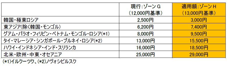 運賃額 : 日本発旅程 (金額はお一人さま一区間片道あたり)
